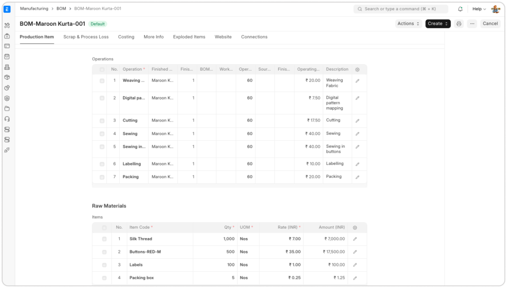• Tính năng BOM đa cấp (Multi-level BOM) để quản lý công thức sản xuất theo từng sản phẩm, từng bộ phận.