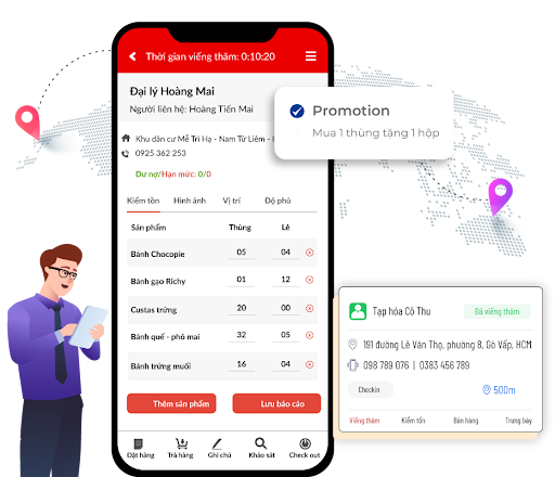 Cho phép kiểm tồn kho tại các điểm bán, nhà phân phối, đại lý thông qua đội sales thị trường…
