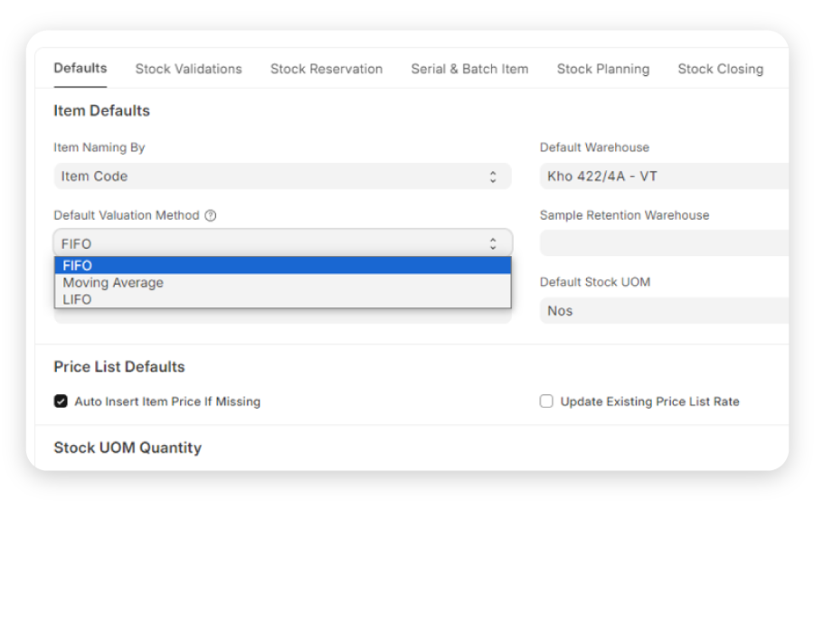 ERPNext cho phép quản lý tồn kho theo lô, seri, hạn sử dụng, giúp doanh nghiệp theo dõi và kiểm soát hàng hóa một cách chính xác và hiệu quả.