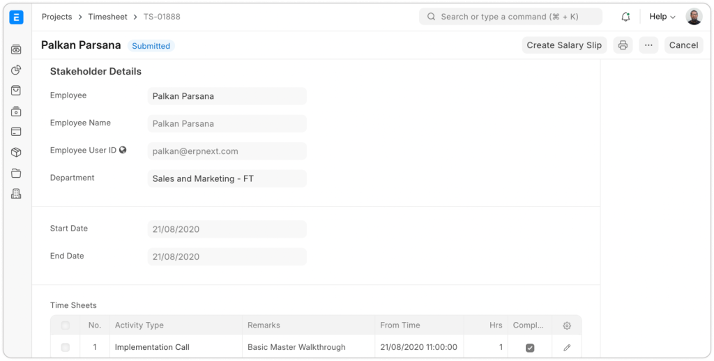 Với tính năng này, ERPNext không chỉ giúp theo dõi tiến độ công việc mà còn hỗ trợ đánh giá hiệu quả tài chính của các hoạt động, đồng thời đảm bảo sự công bằng và minh bạch trong việc thưởng phạt.