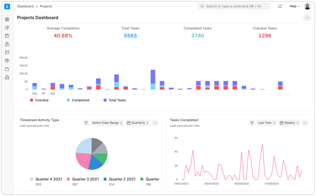 Quản lý dự án theo đúng kế hoạch là rất quan trọng để đảm bảo lợi nhuận và cam kết với khách hàng. ERPNext có thể giúp bạn điều này. Với module Quản lý dự án (Project Management) trong ERPNext, doanh nghiệp có thể chủ động kiểm soát toàn bộ quy trình tổng thể cho từng giai đoạn, phân nhánh thành các nhiệm vụ cụ thể để theo dõi tiến độ và chi phí theo thời gian thực. Với các mẫu có sẵn trên phần mềm, ERPNext hỗ trợ doanh nghiệp dễ dàng lập kế hoạch các dự án mới, có thể liên kết trực tiếp với các giao dịch bán hàng và mua hàng để hỗ trợ doanh nghiệp theo dõi lợi nhuận, kiểm soát ngân sách và đảm bảo tính khả thi tài chính ngay từ bước lập kế hoạch.